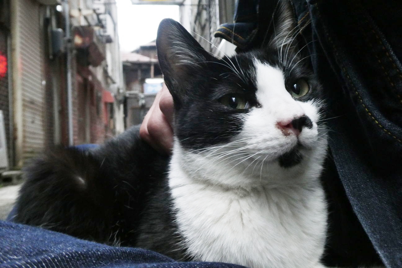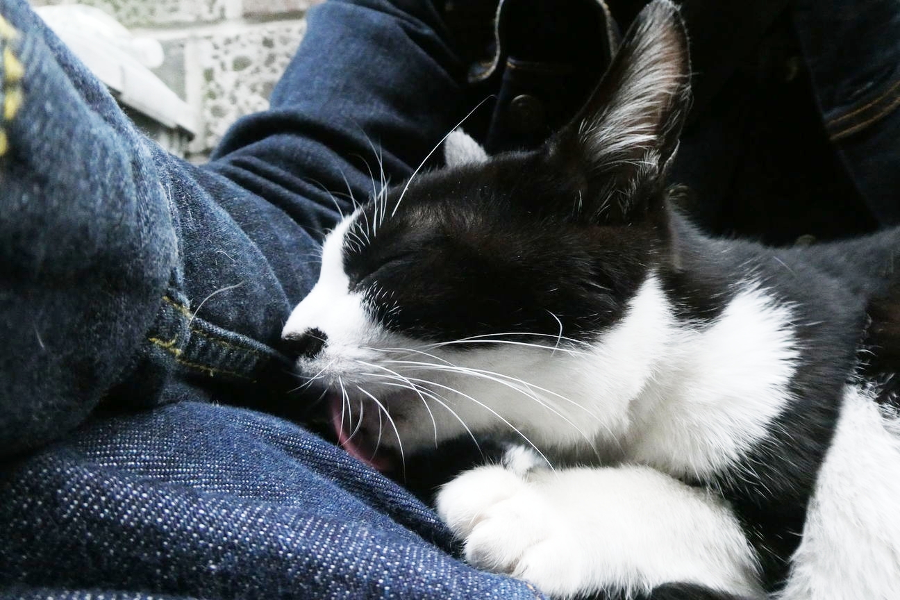 ワイ 猫に舐められる