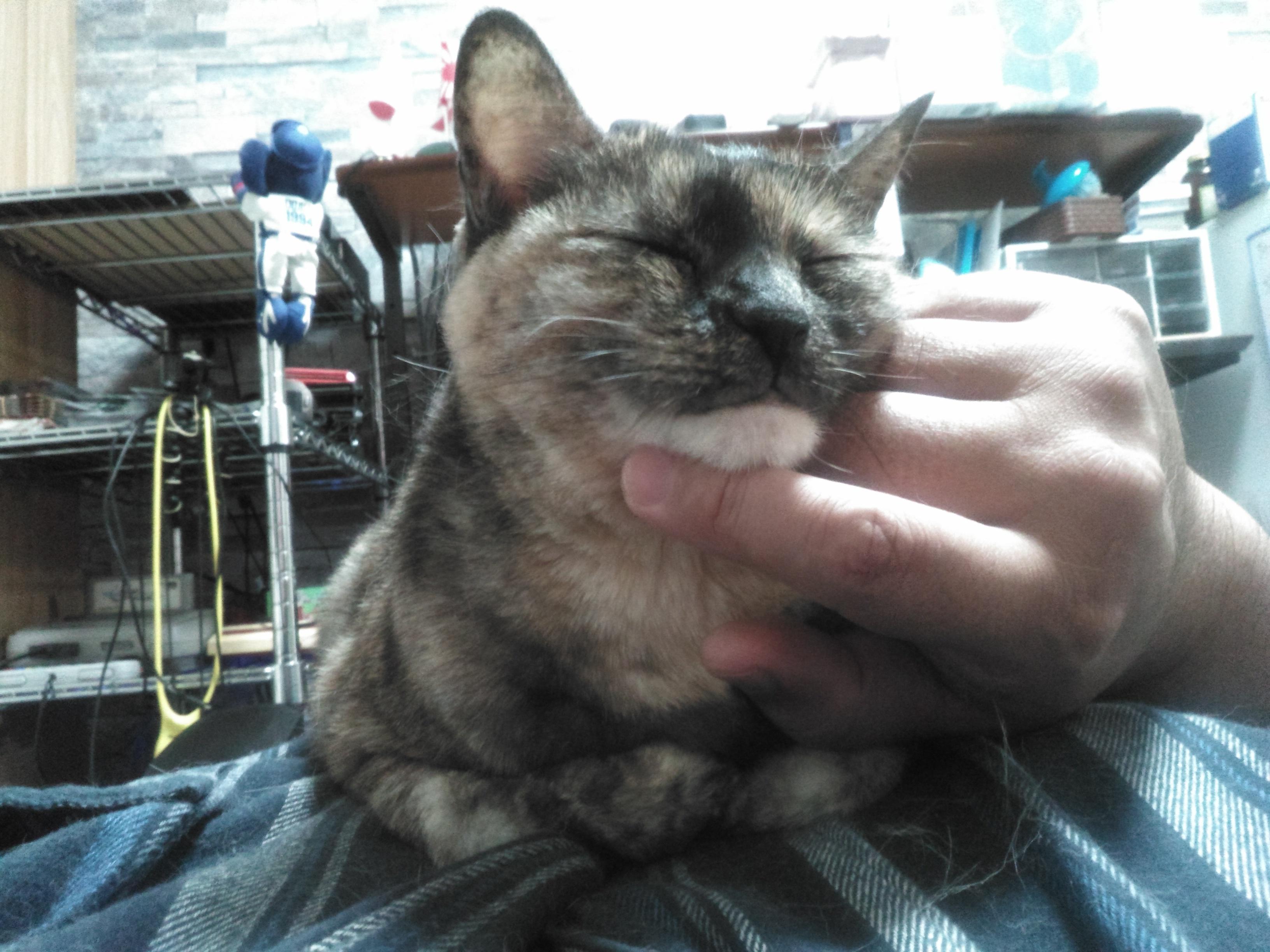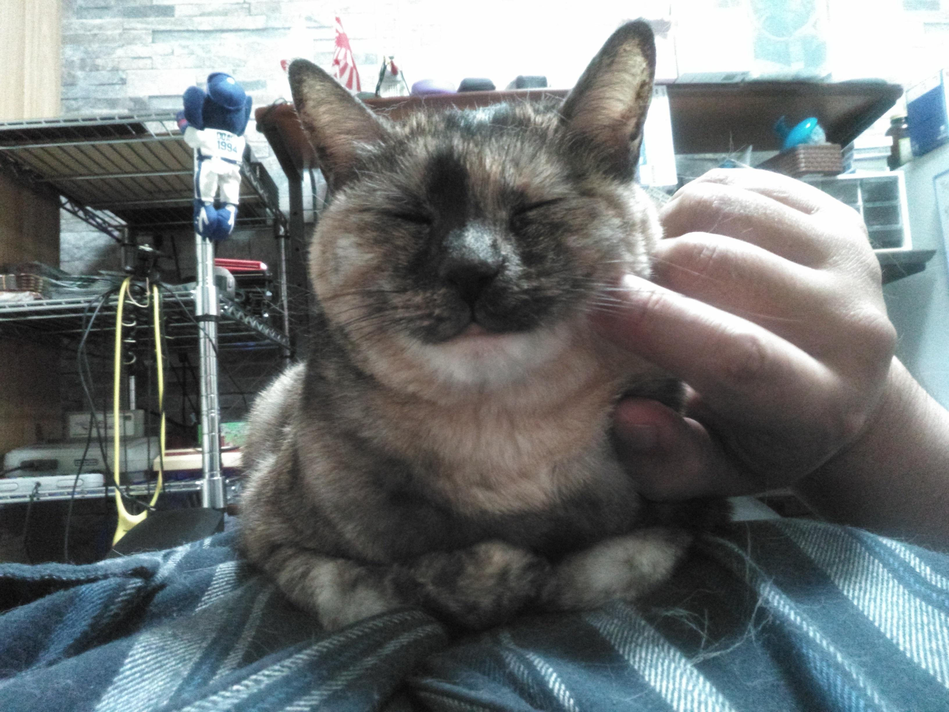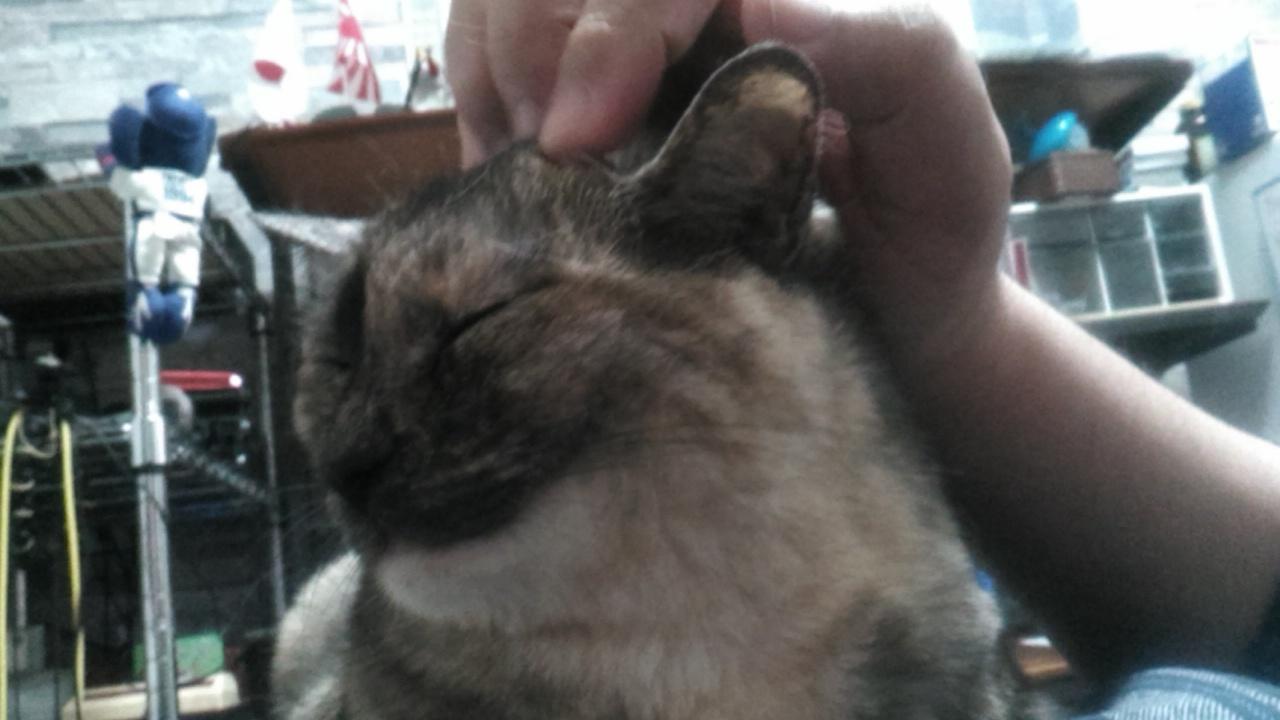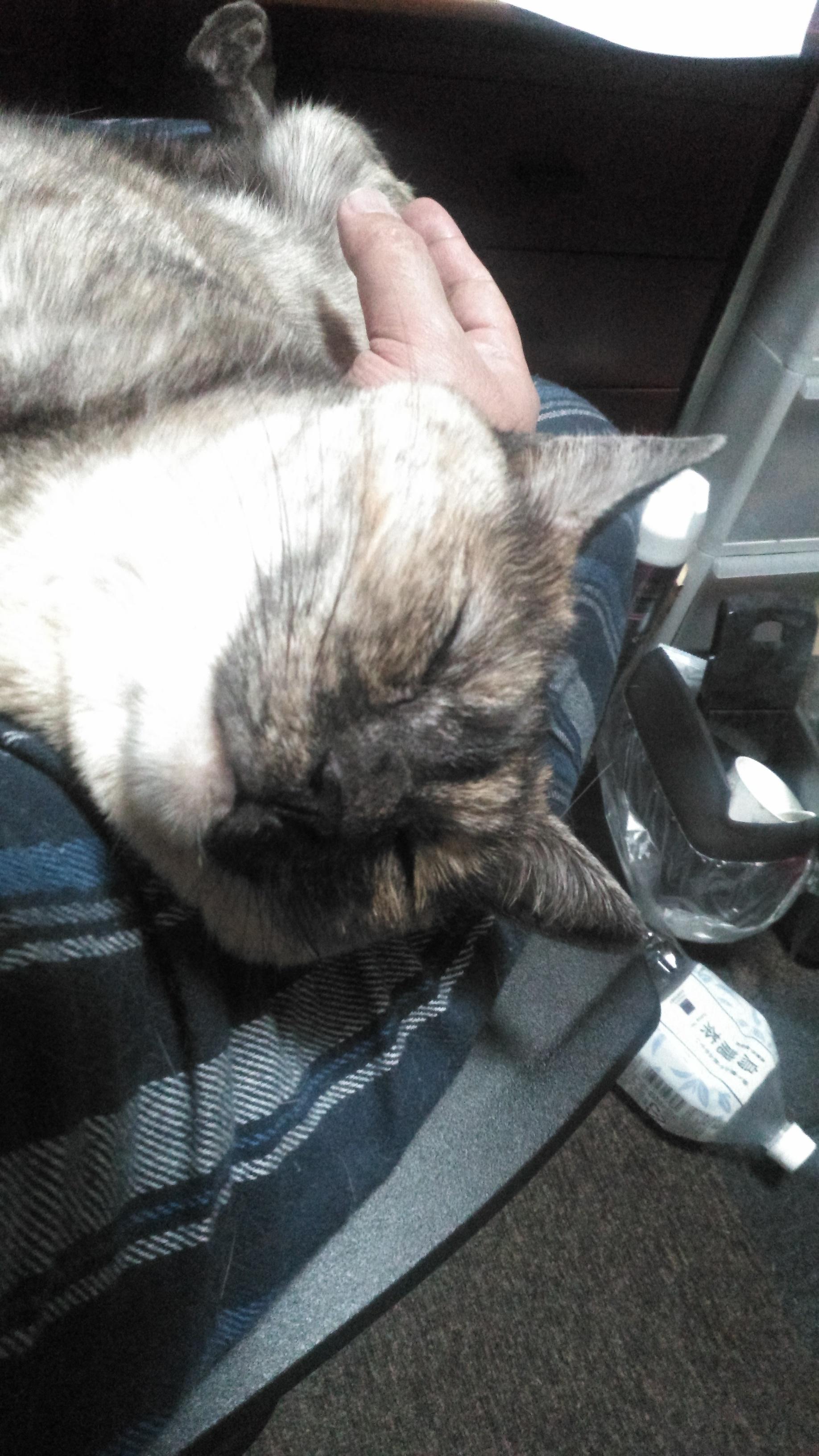 サビ猫ちゃんだから女の子かな?あまり甘えないってイメージあったけど甘えん坊そうだしうっとりしてる顔もしてていいな