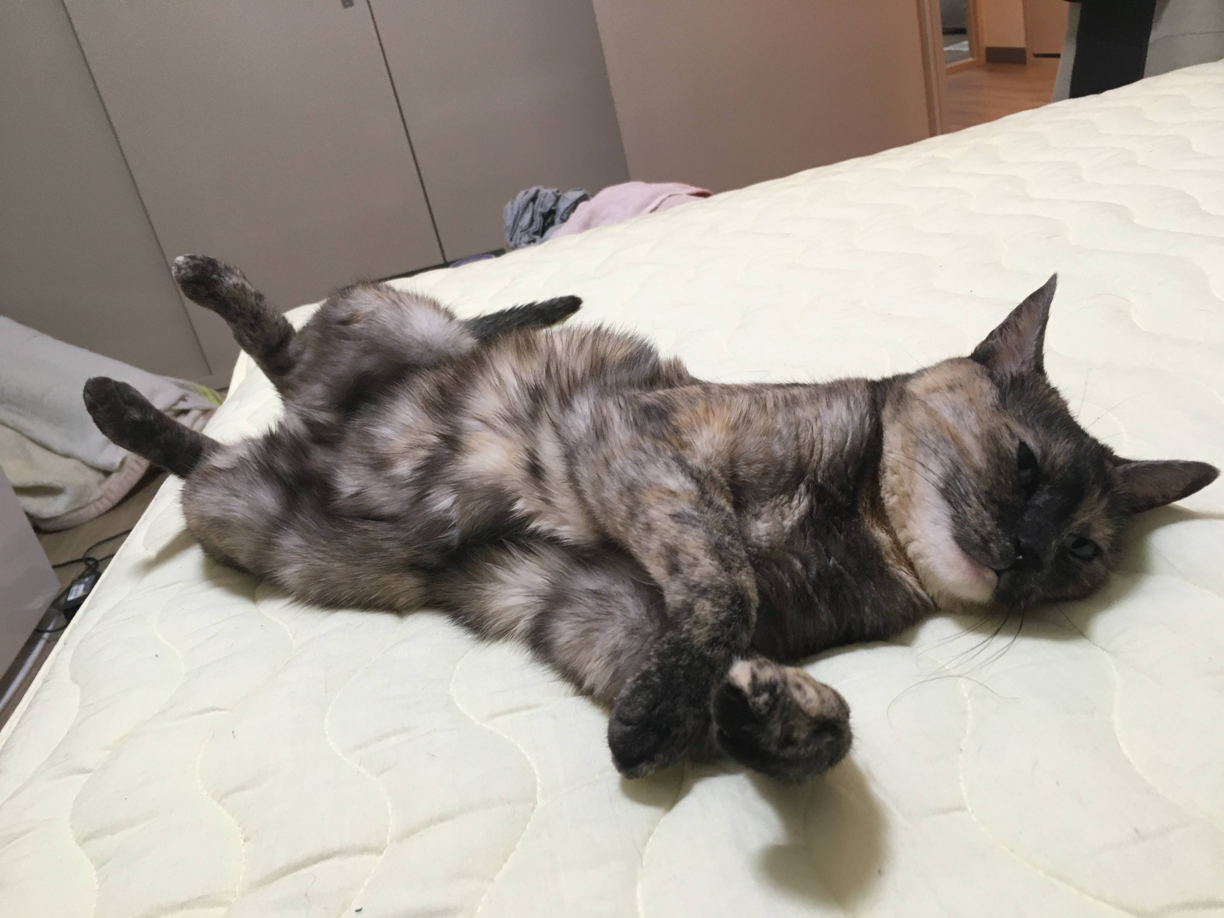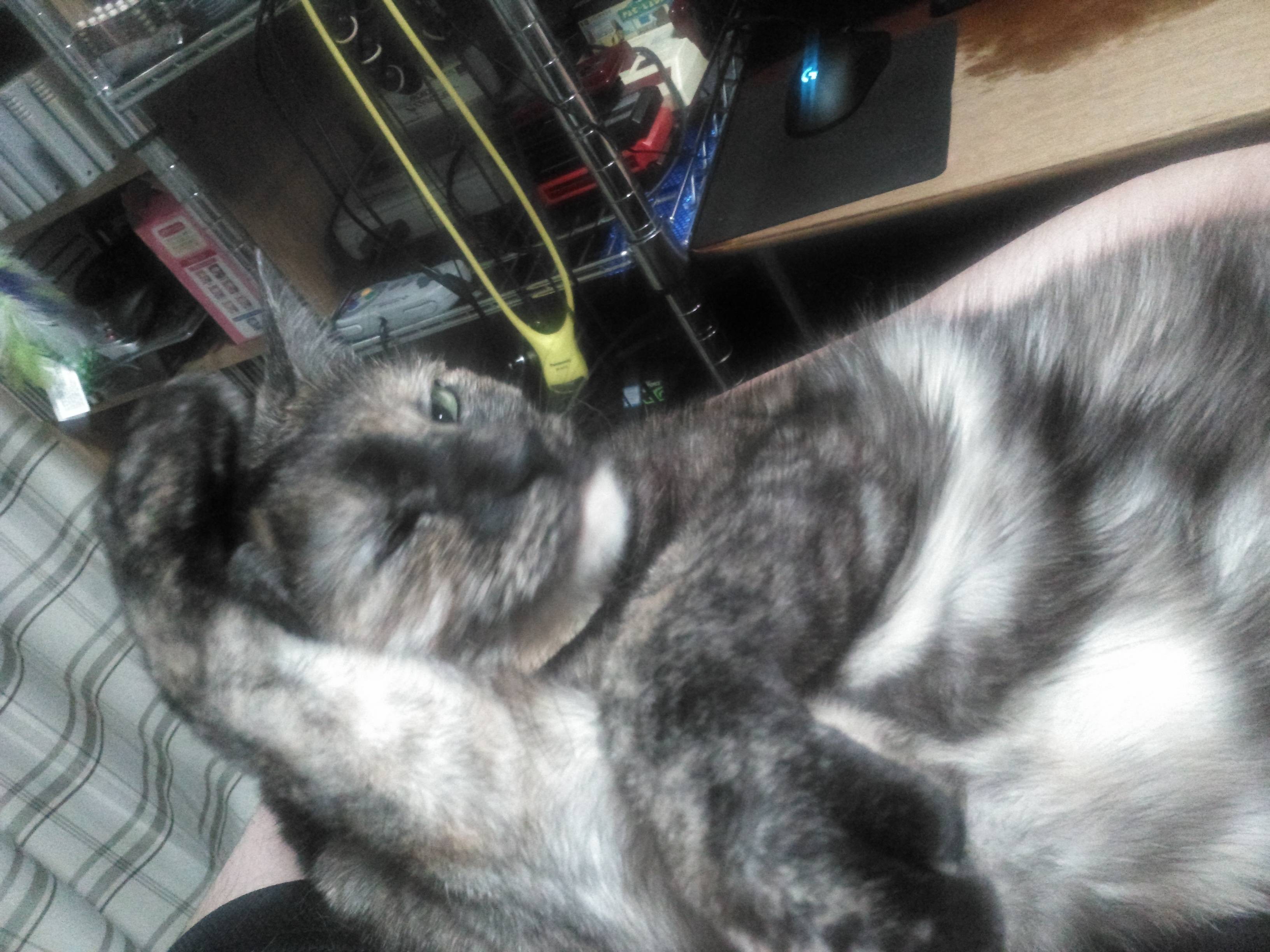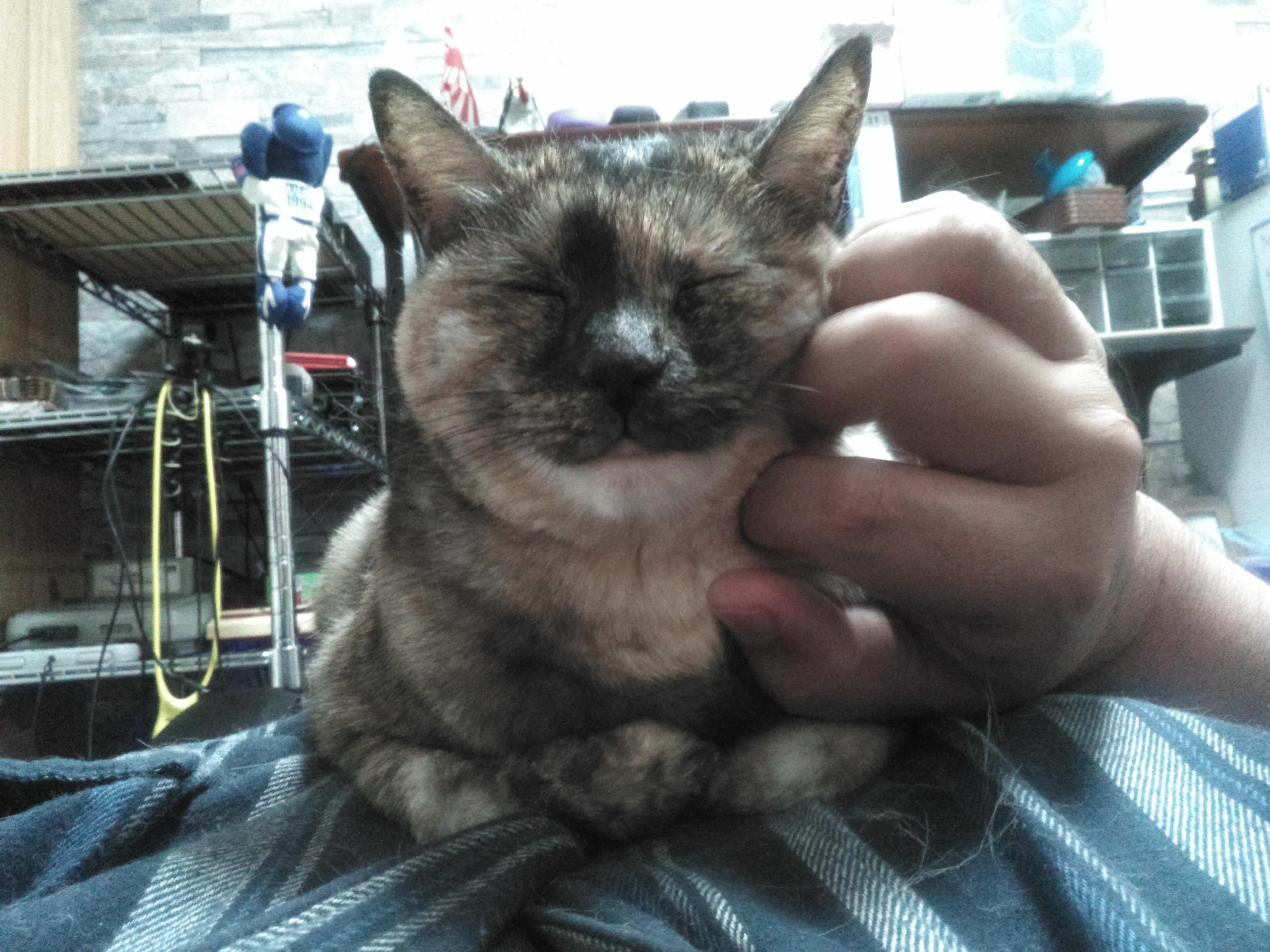 サビ猫ちゃんだから女の子かな?あまり甘えないってイメージあったけど甘えん坊そうだしうっとりしてる顔もしてていいな
