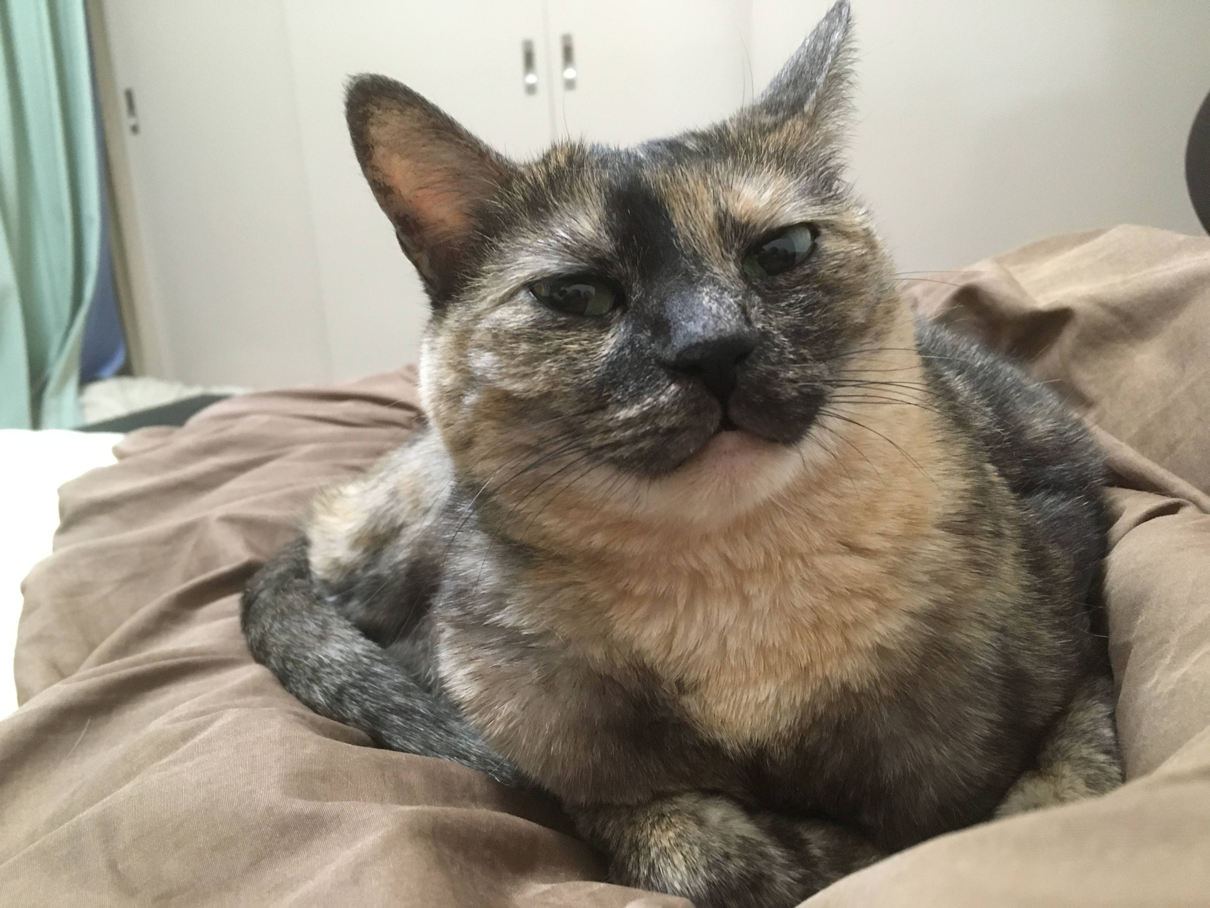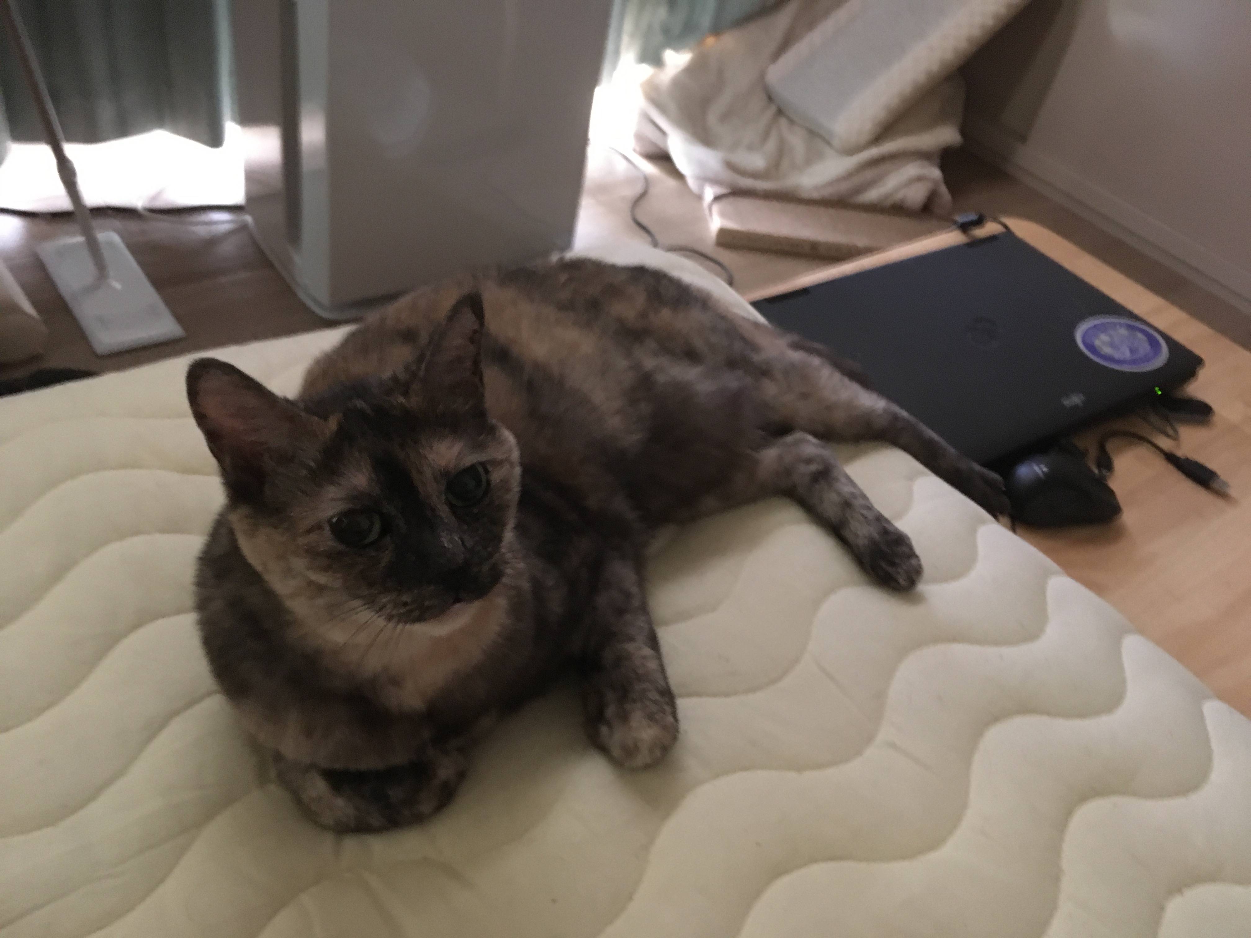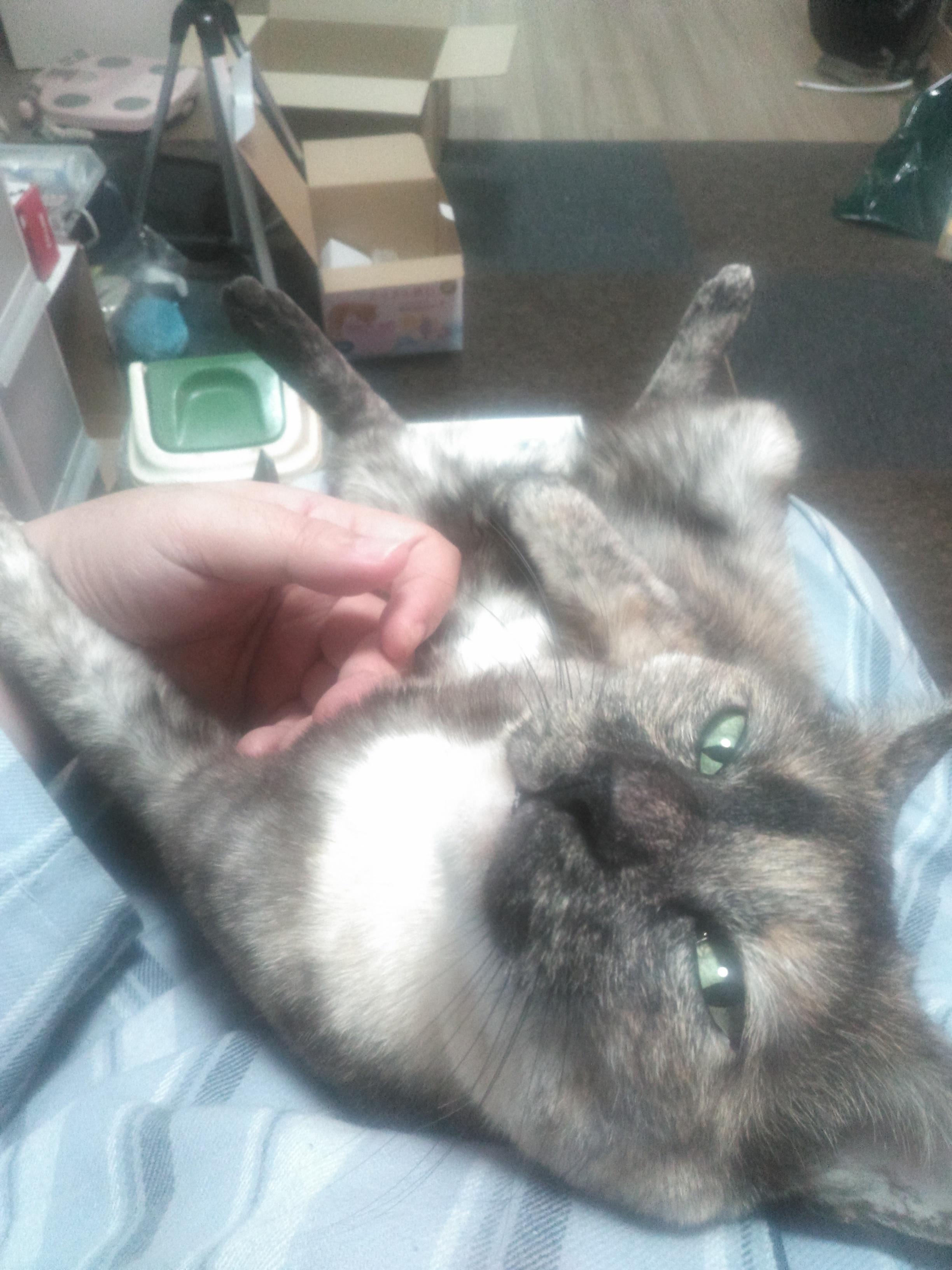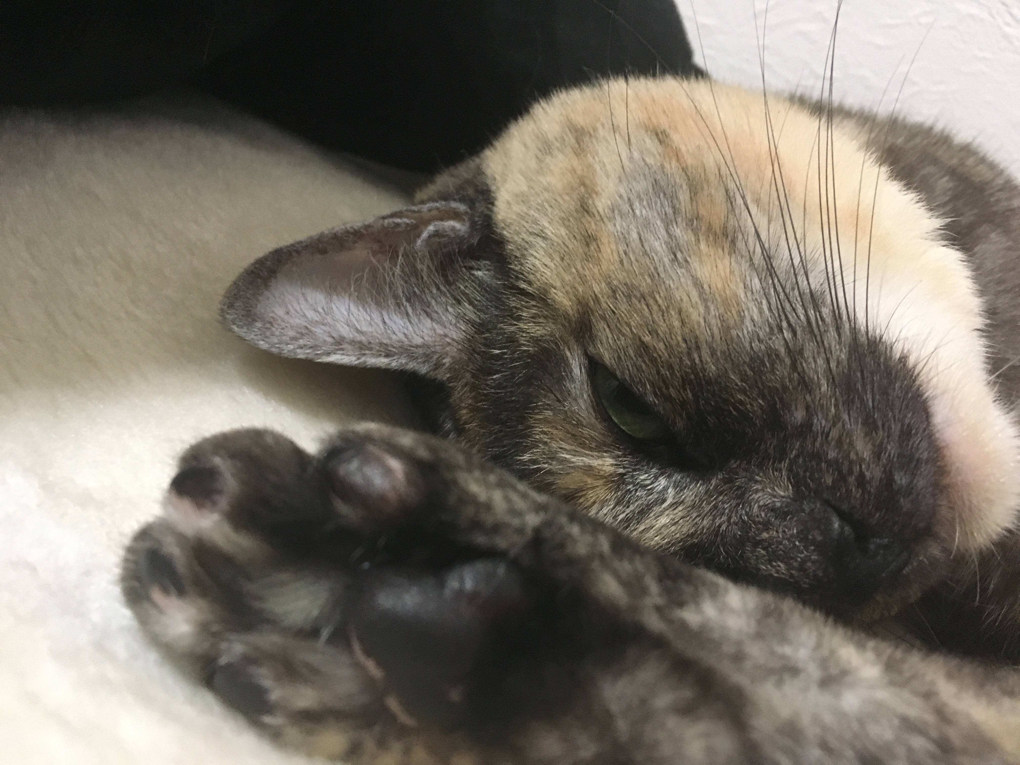 サビ猫ちゃんだから女の子かな?あまり甘えないってイメージあったけど甘えん坊そうだしうっとりしてる顔もしてていいな