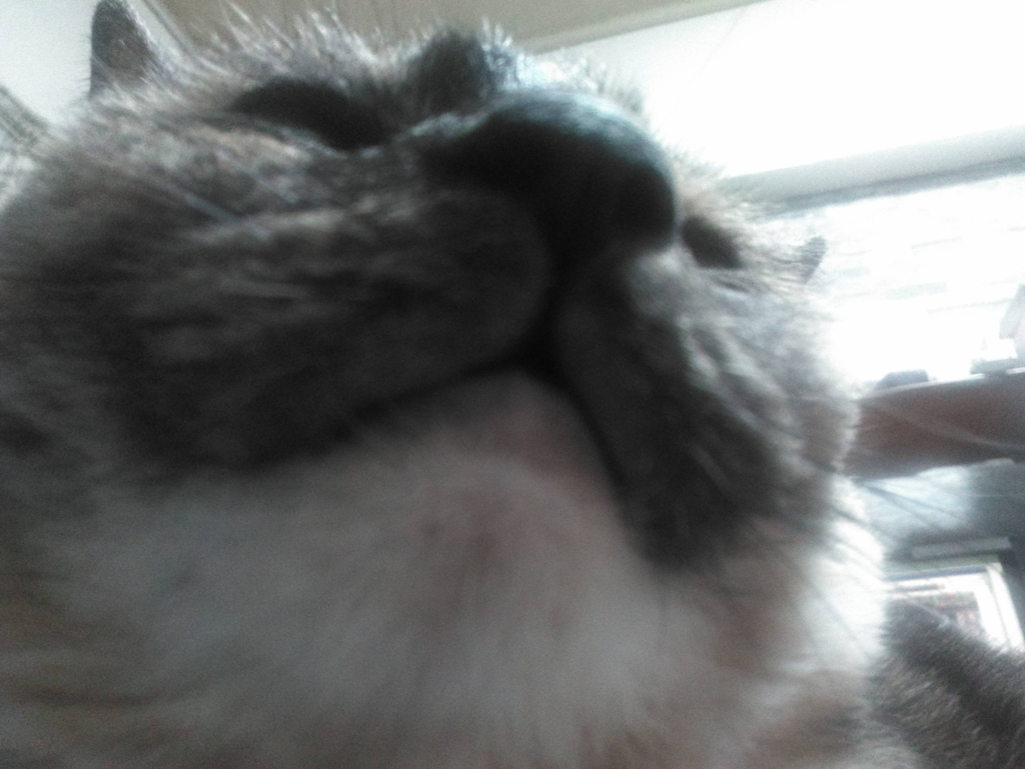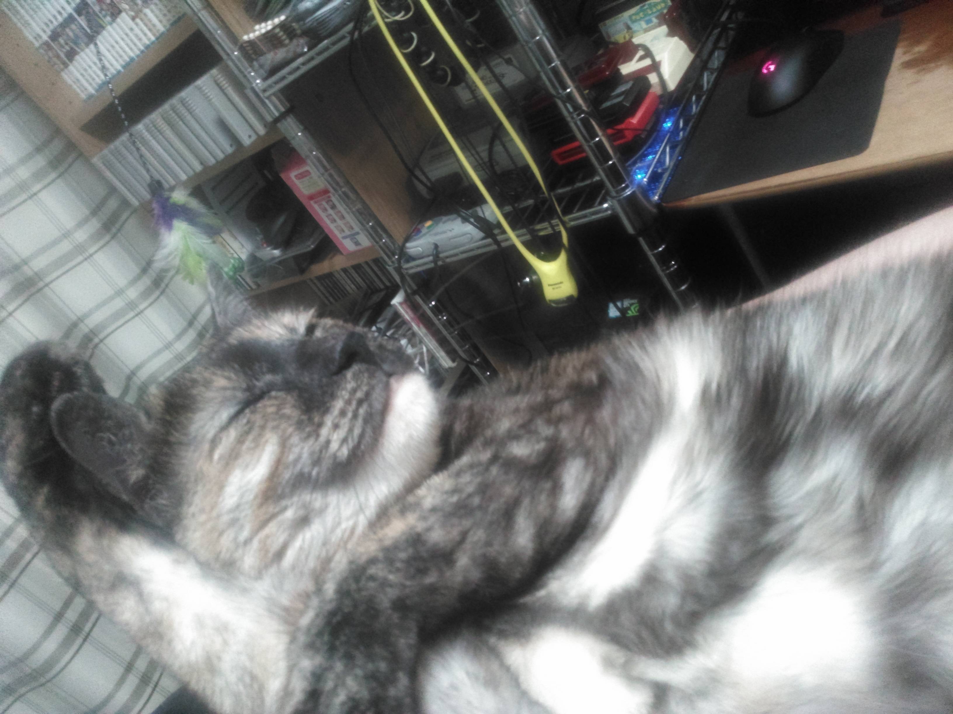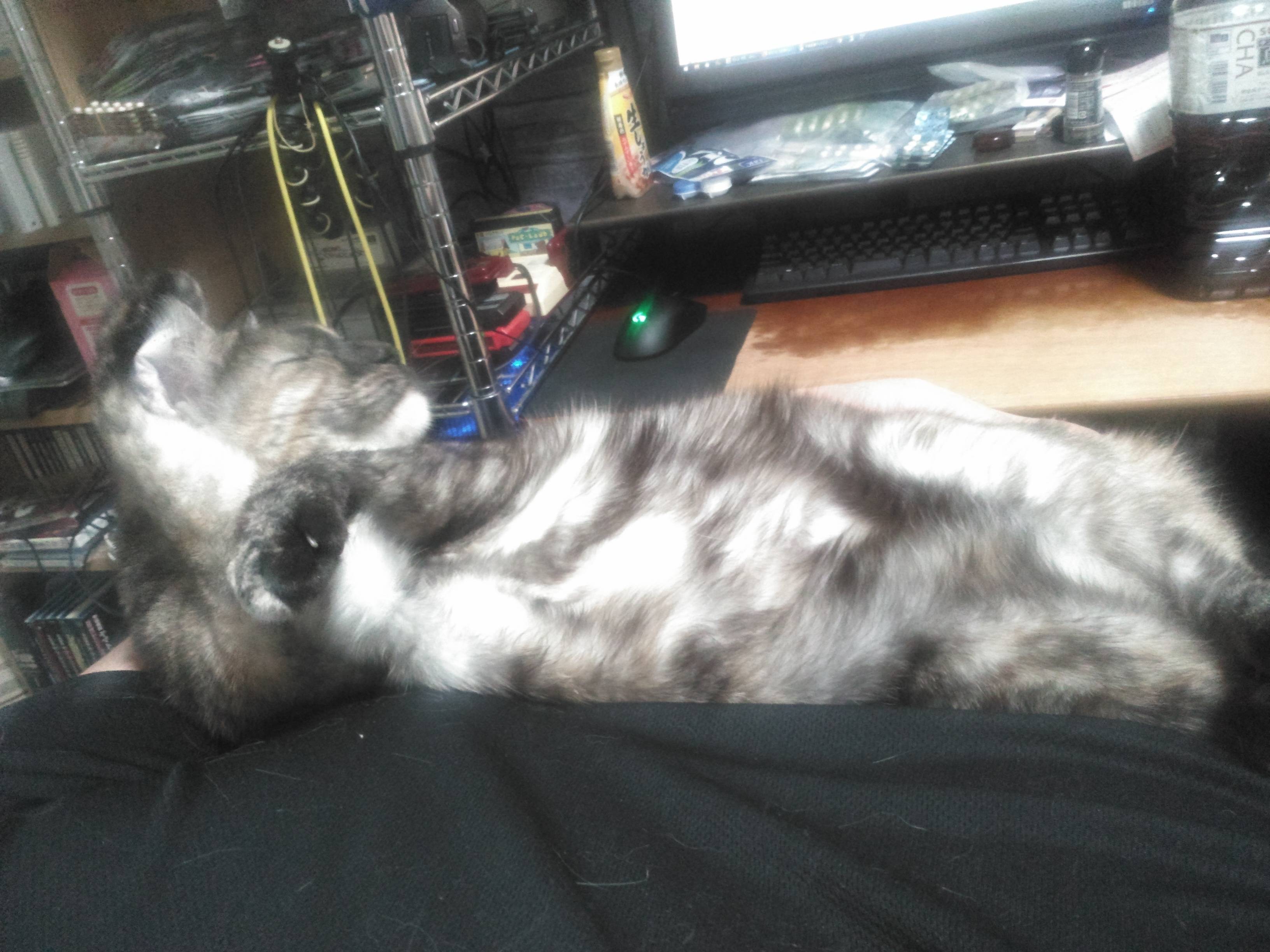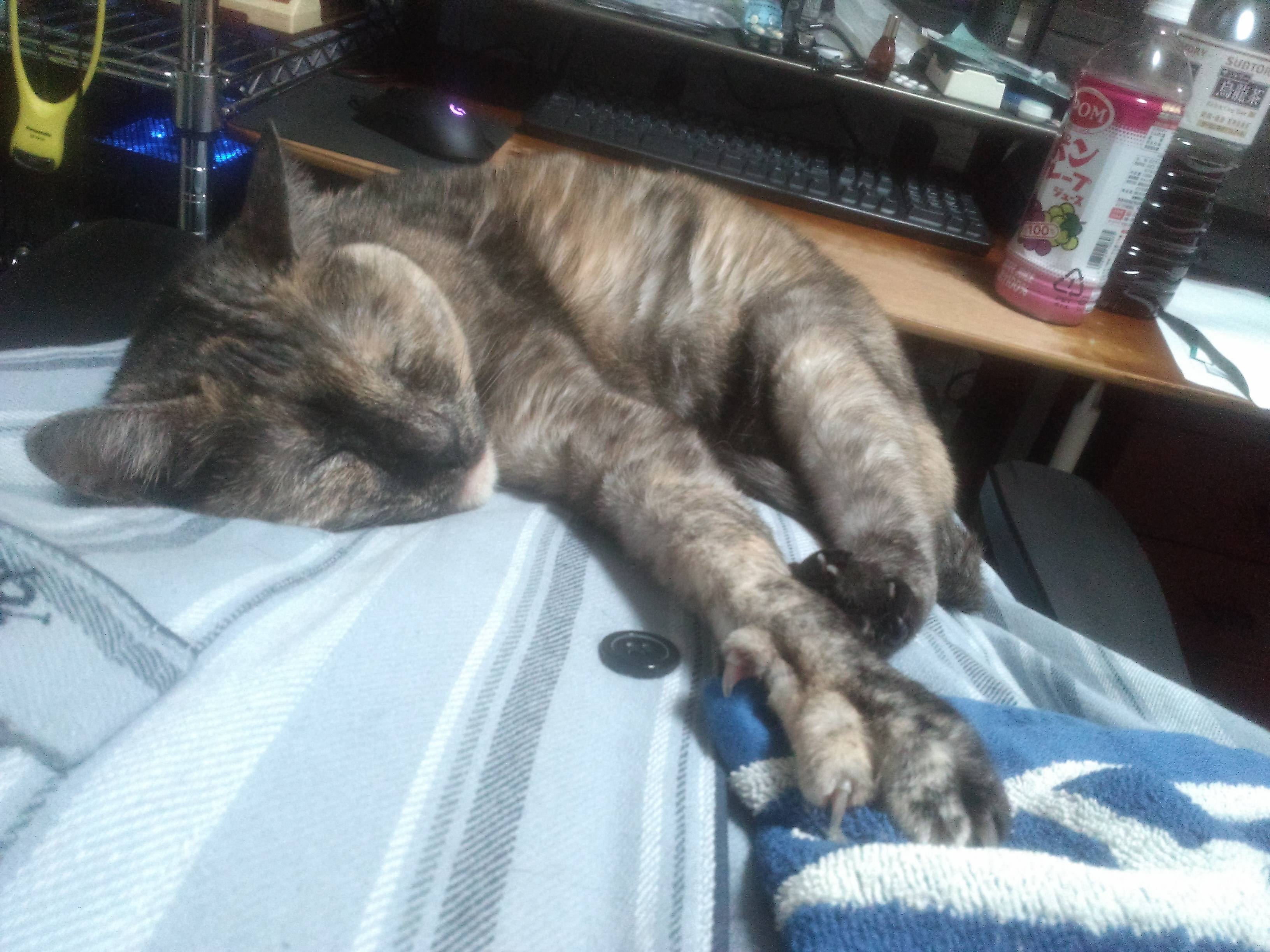 胸の中でぐっすり・・・なんだけど、寝ぼけて爪しゃきーん