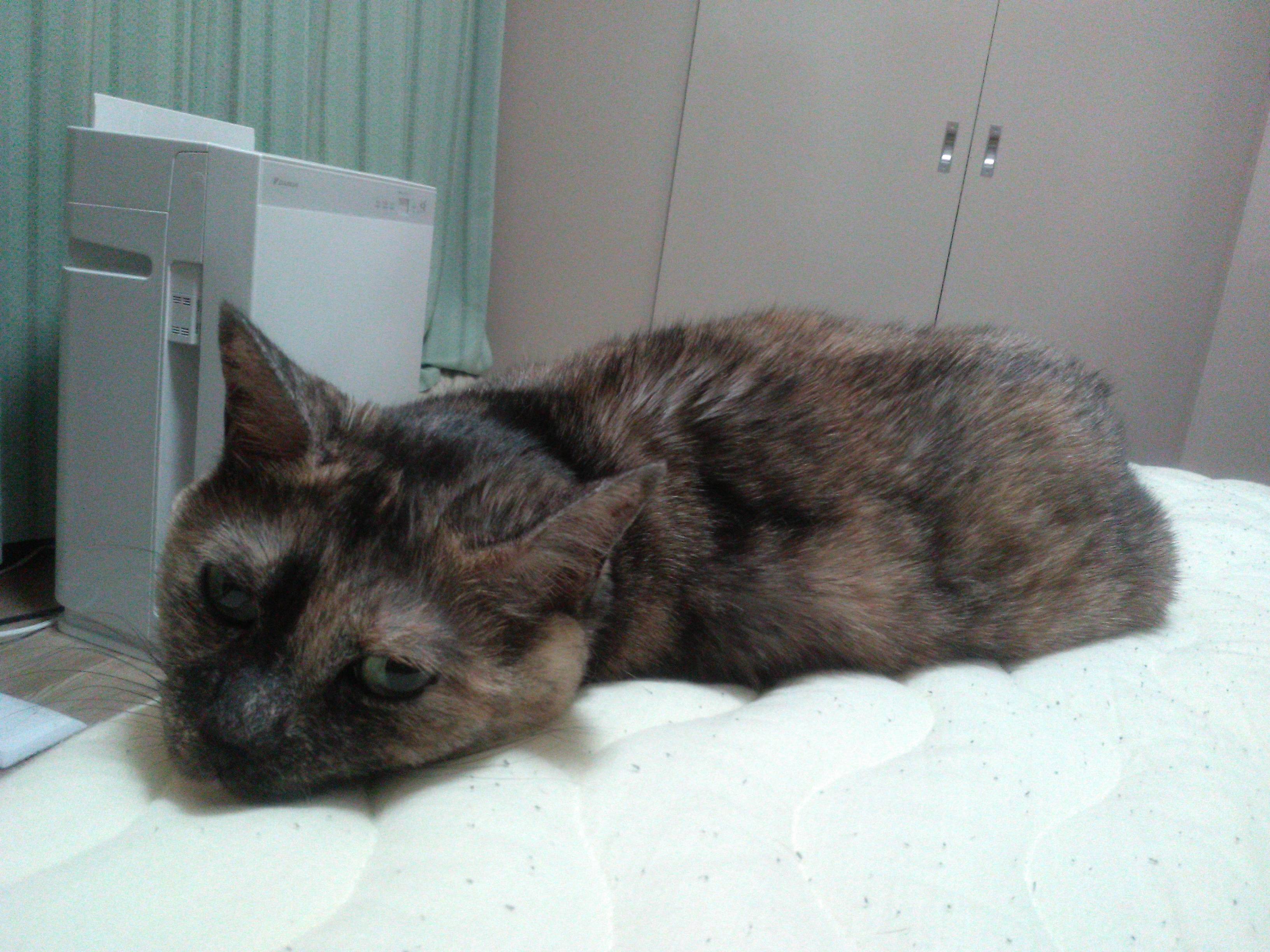 ここ数日寒かったせいか、エアコンの前で寝てる写真が多いな
