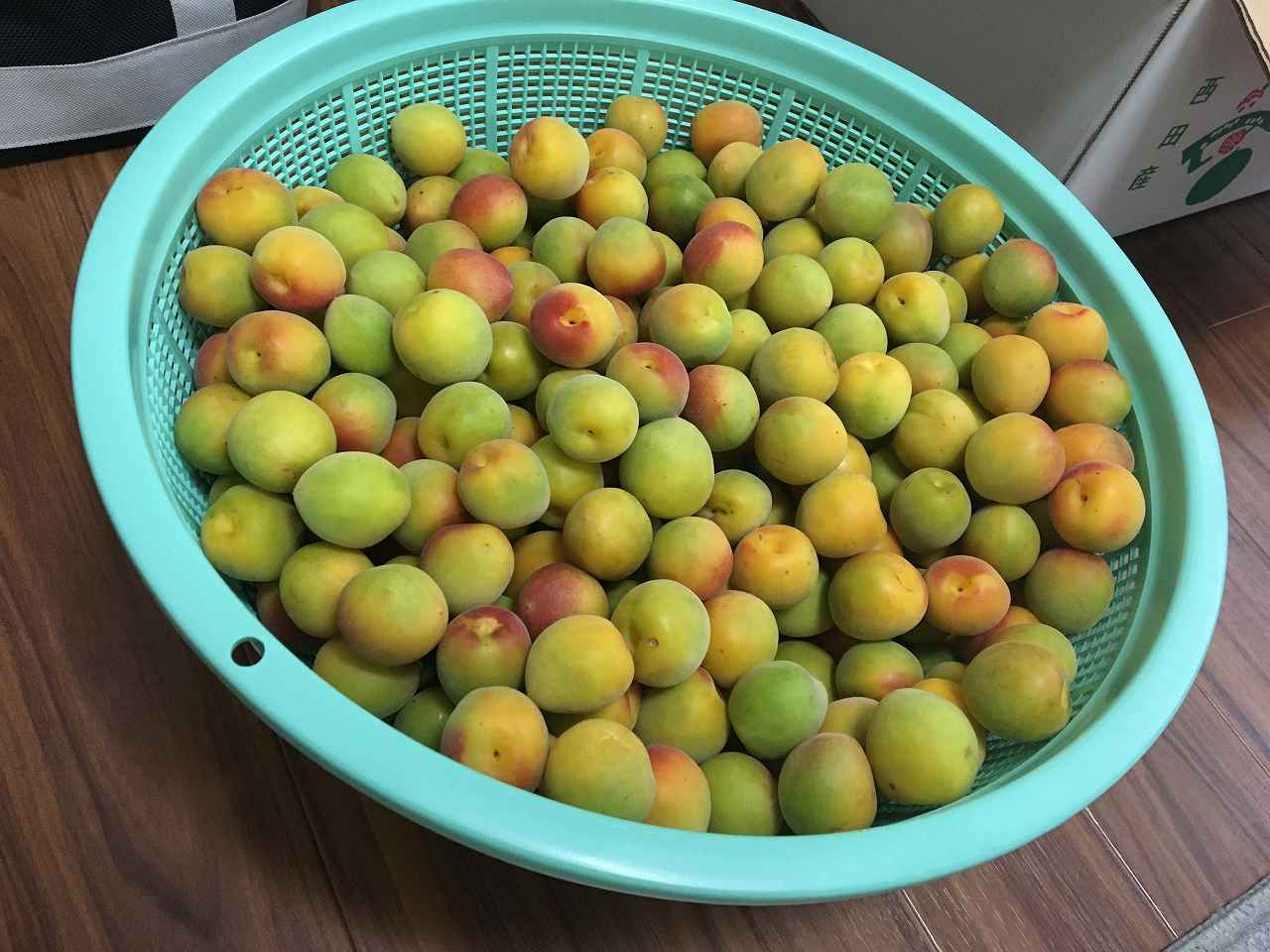 傷の有る梅を除いたら三割しか使えなかった