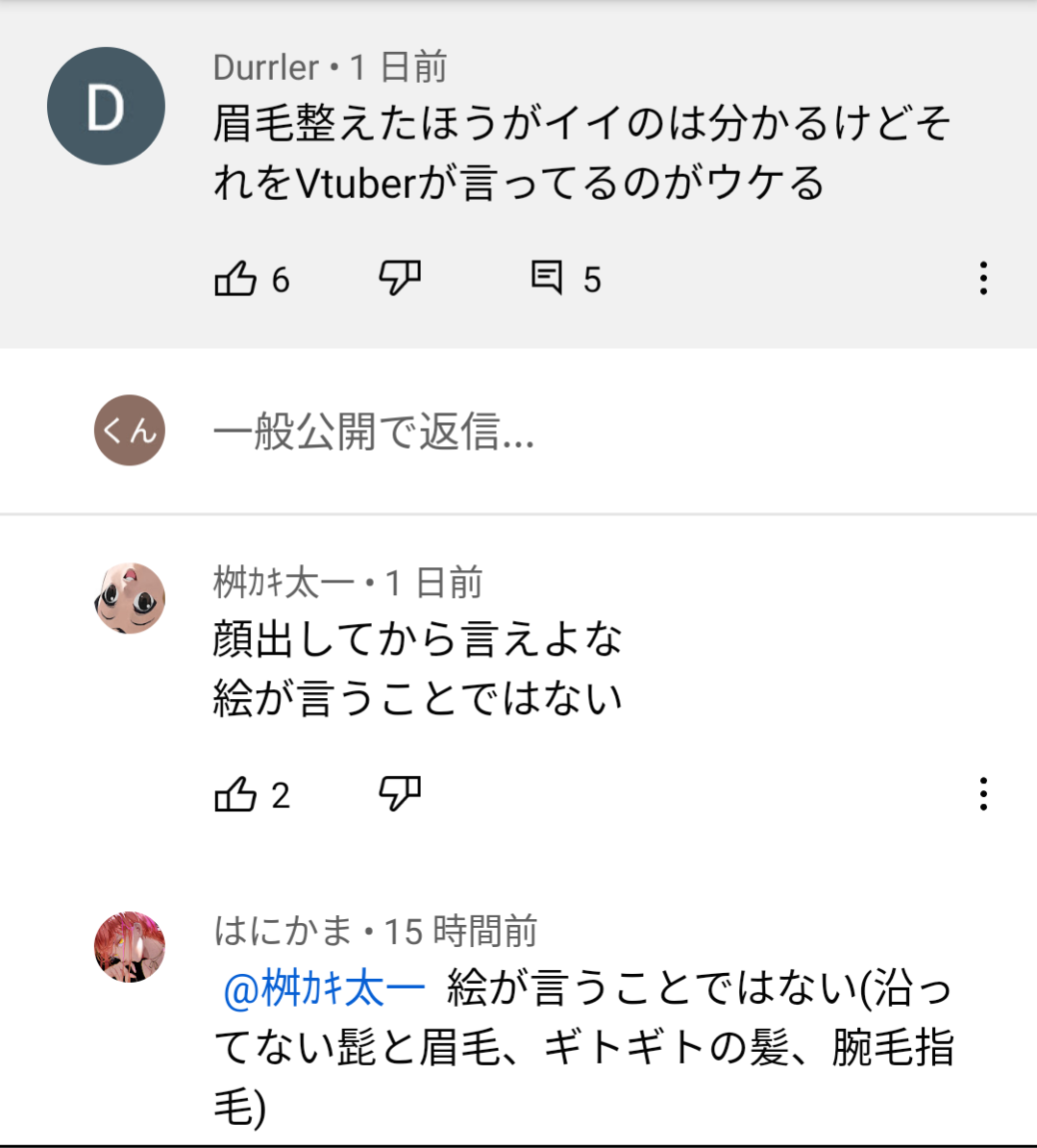 Vtuber「男の人はちゃんと眉毛を揃えに行った方がいい」→コメ欄発狂