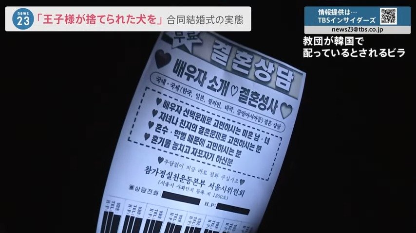 ビラには「統一教会」や「合同結婚式」という文字はなく、結婚相談所の勧誘と見間違えるほどです。
