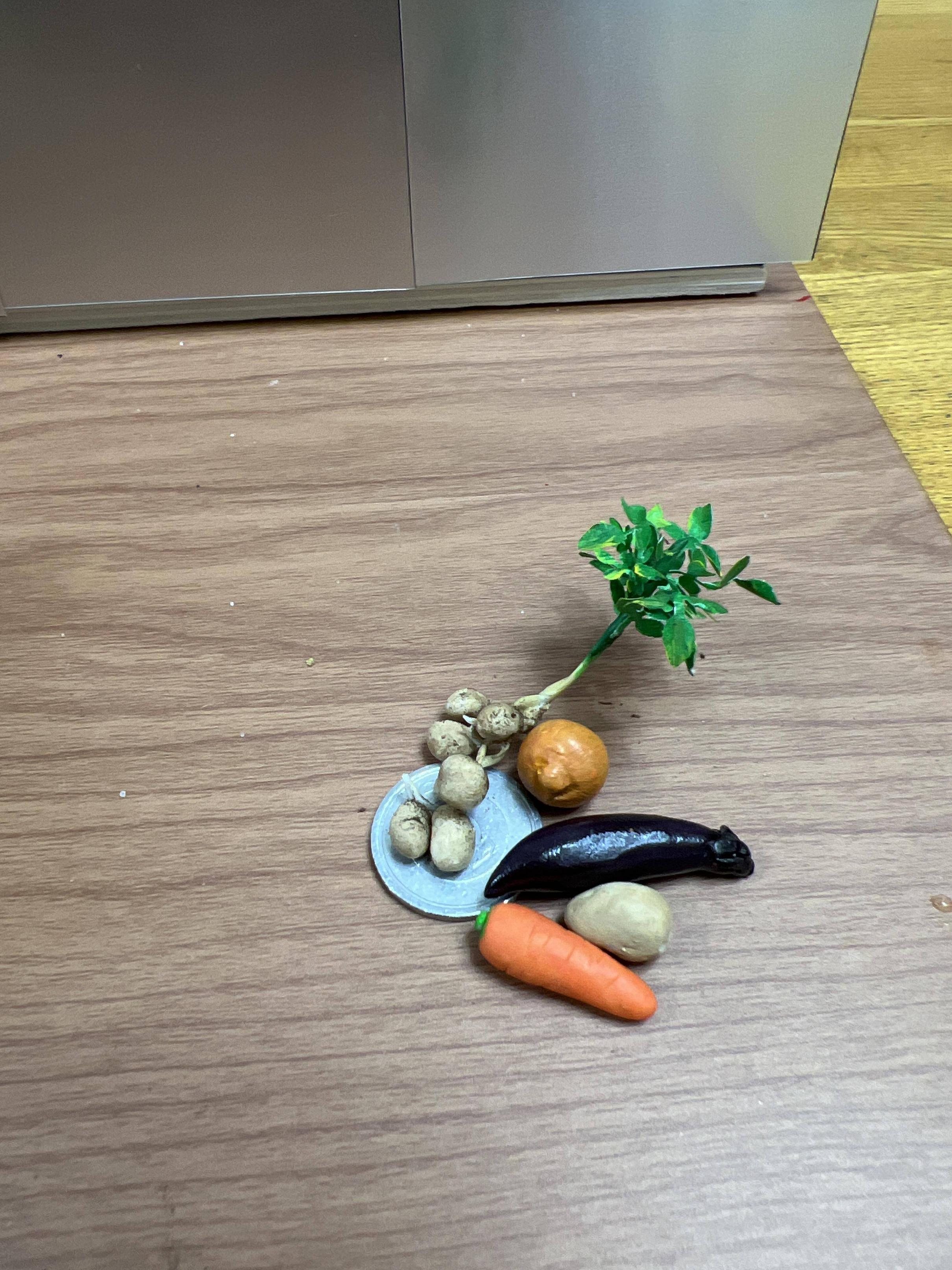 1円サイズの野菜は粘土で作って実際に調理してる野菜は本物の野菜です