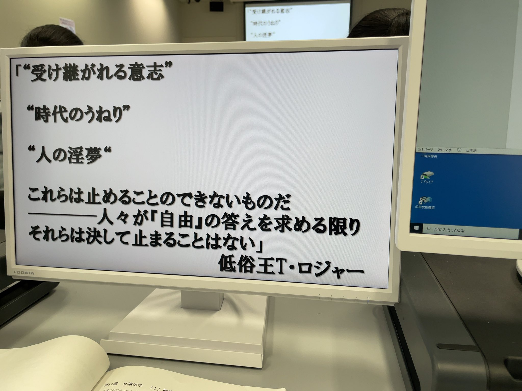 大講堂での授業ってどうしてもこういう感じになる