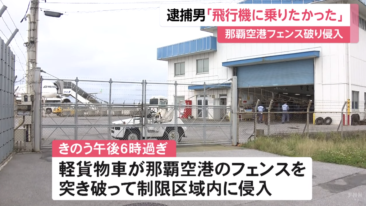 きのう午後6時過ぎ、軽貨物車が那覇空港のフェンスを突き破って制限区域の中に侵入。