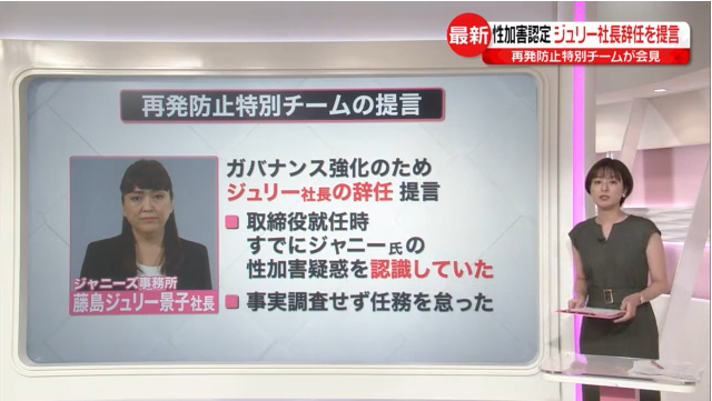 ジャニーズ事務所のジャニー喜多川前社長による性加害問題で、再発防止特別チームは29日、調査報告書を公表し、ジャニー喜多川前社長による性加害を認定しました。