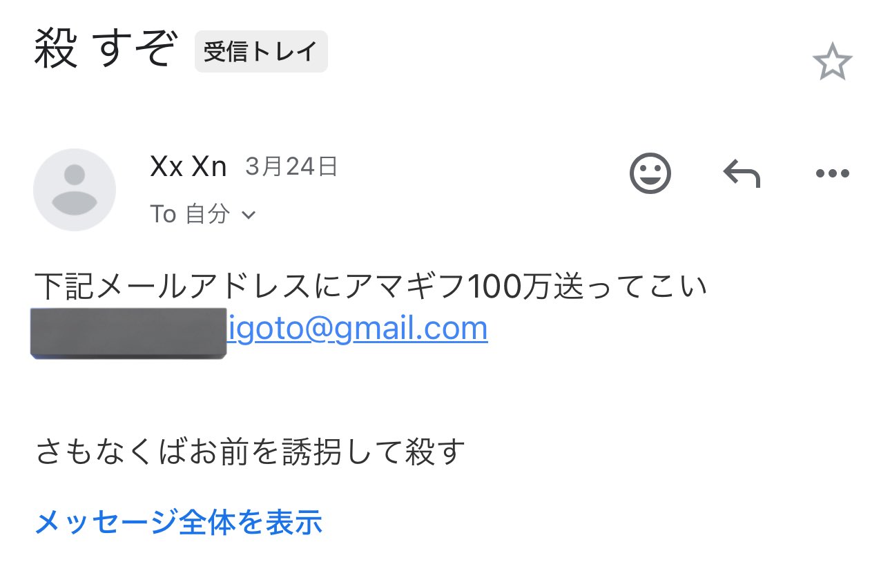 こんなメッセージ送ってきたやつみんなブタ箱にブチ込めばいいのになぁ