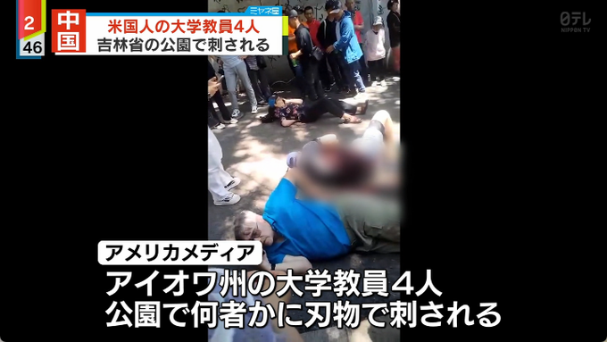 アイオワ州コーネル大学の講師4人が中国で刺傷事件で負傷、大学が発表