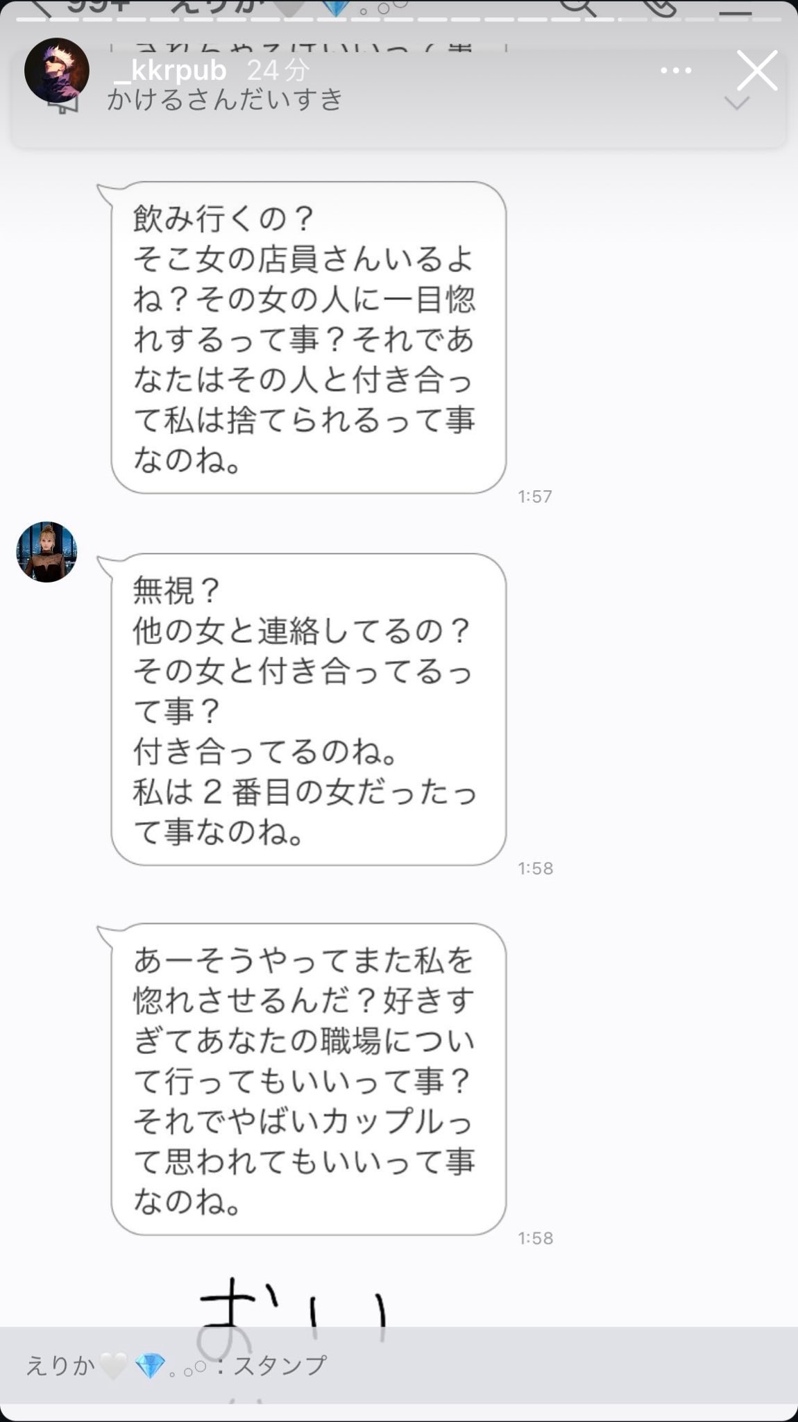 ちょっとケンカして遅く帰っただけで、他のヤツのところ行ってたんかとか言われて