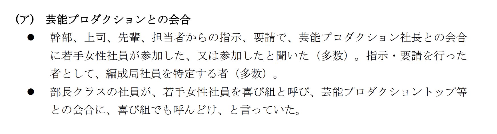 ・部長クラスが若手女性社員を「喜び組」と呼び芸能プロダクション社長との会合に連れて行く