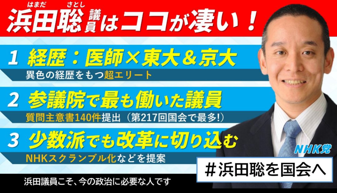 浜田さんはNHK党辞めたらよそから勧誘すぐ来そうだけどな