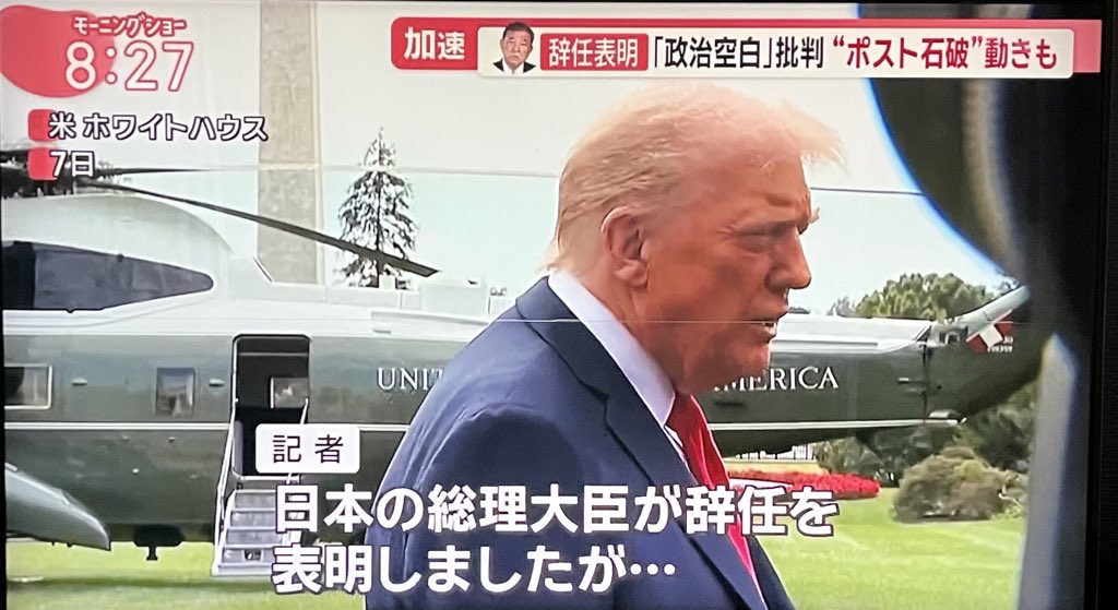 石破茂首相が7日に退陣表明したことについて、トランプ米大統領は7日夕(日本時間8日朝)、「(辞任には)驚いた。彼を知っていて、彼のことが好きだった」「我々はとてもうまくいっていた」と述べた。