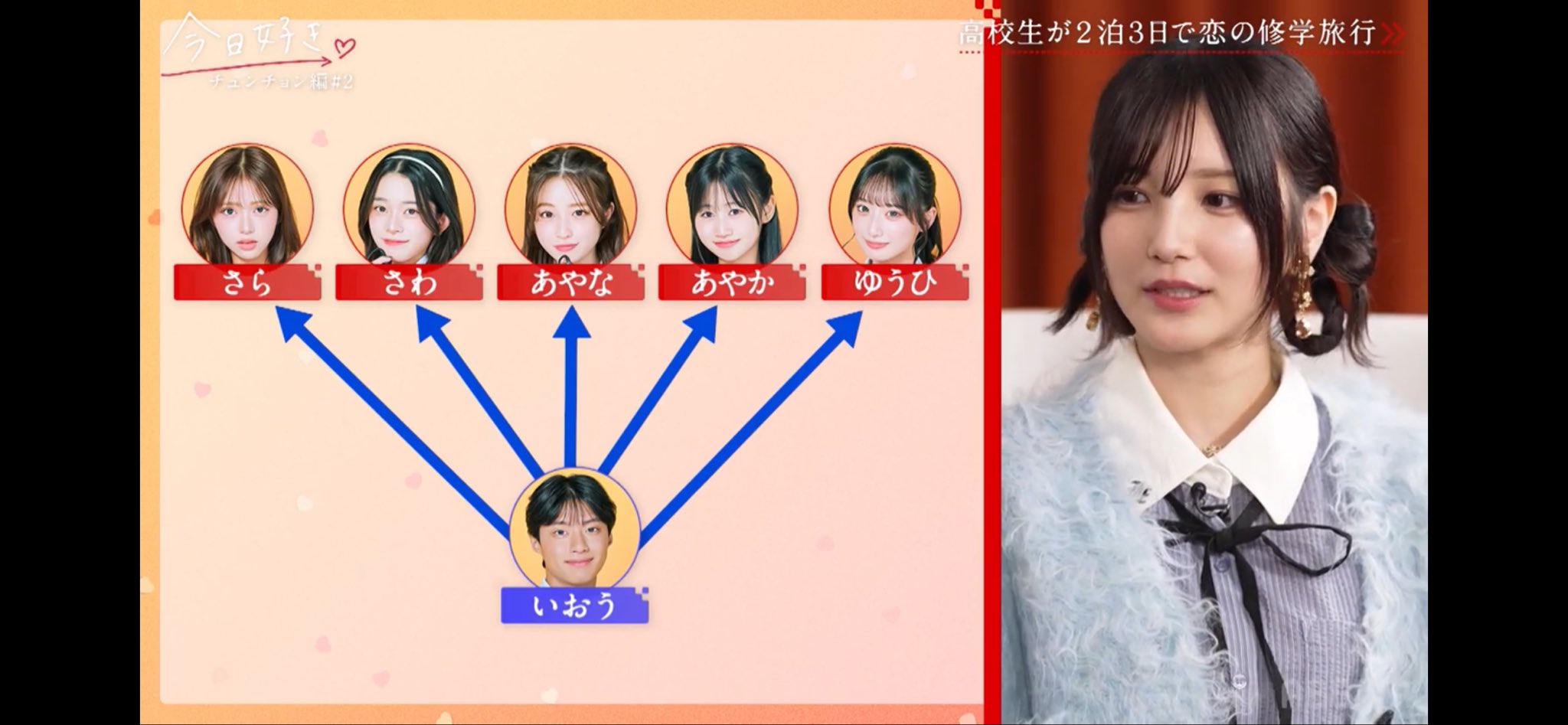 これは、旅1日目で相関図に乗ってる女の子全員から気になってますと声かけられて全員とツーショした後のいおうの気持ちです。こんな可愛い女の子達に気になってますって言われたら、そりゃ全員気になっちゃうよね。