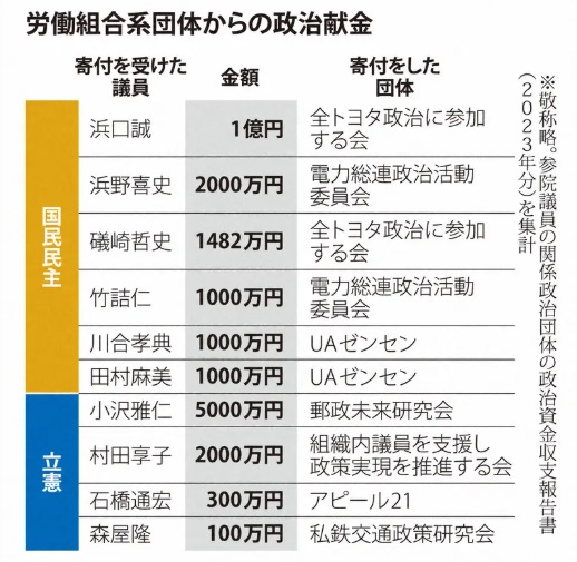 国民民主党や立憲民主党は労働組合からの献金