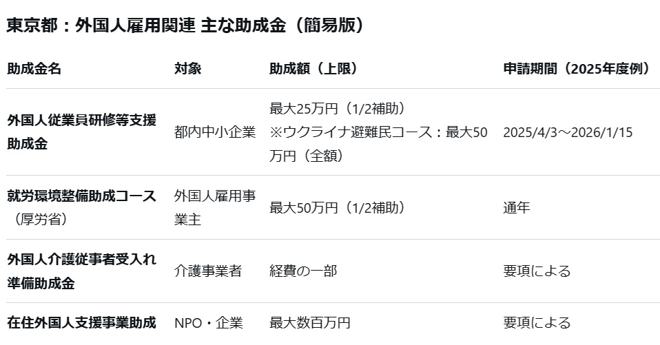 Grokに一覧で出力してもらった外国人向け補助金