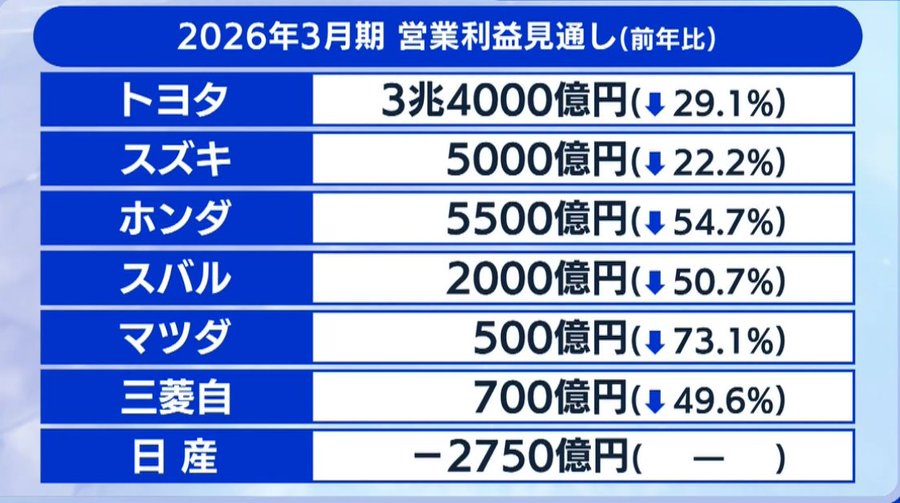 自動車メーカー全社マイナスとかwwwww