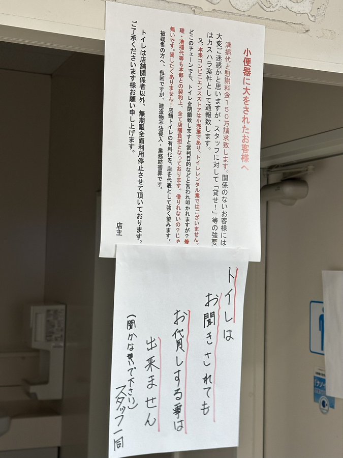 気になって一店舗で聞いたら、一度や二度じゃなくてもう夜間、深夜帯はトイレは使用禁止にして