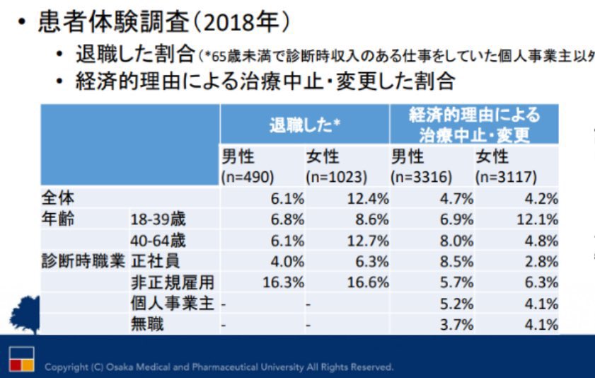 これ、右から2番目の男性の欄に着目してよーく見て欲しいんだよね。経済的な理由で治療を諦める割合が、