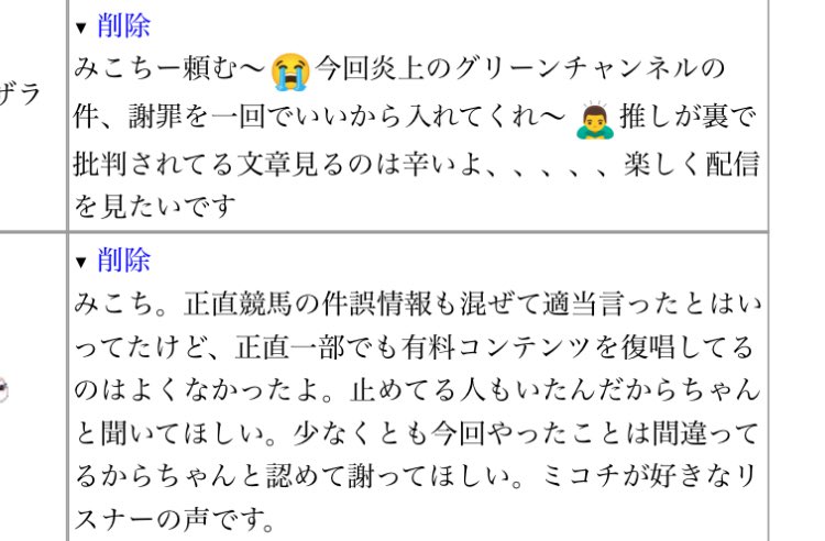 こう言う指摘する文章は残しておくと荒れる原因になるから消すのはわからないでもないですけど、せめてこの人にはどうにかしてスパチャ返してあげて欲しいですね。