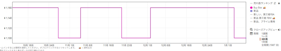 (よくAmazonのセールって元値吊り上げて安く表示してるんでしょって疑う人いるので、keepaの価格履歴も載せておきます。)