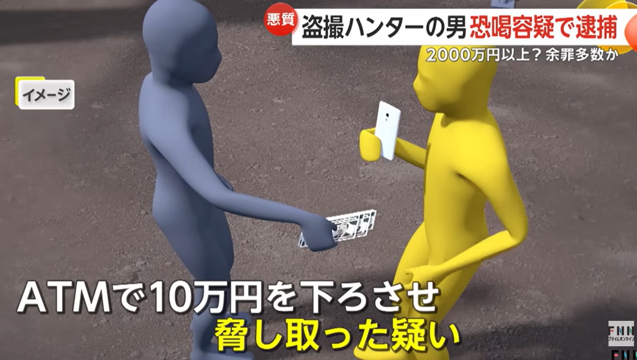 しかもアホなのが、自分が別の盗撮犯を恐喝してる場面も撮ってたっていう……