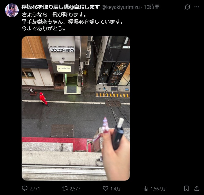 結局私は「欅坂46 平手友梨奈」が大好きだっただけだね。今までありがとう、死にます。さようなら https://t.co/THjEc4PnGf