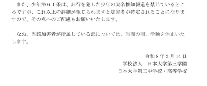 【悲報】甲子園準優勝の日大三高、女子生徒のわいせつ動画を部内拡散した加害者を守る声明文を発表 pic.twitter.com/P02MhI0Ri8
