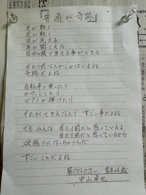 筋ジスなのにめっちゃ字綺麗やん