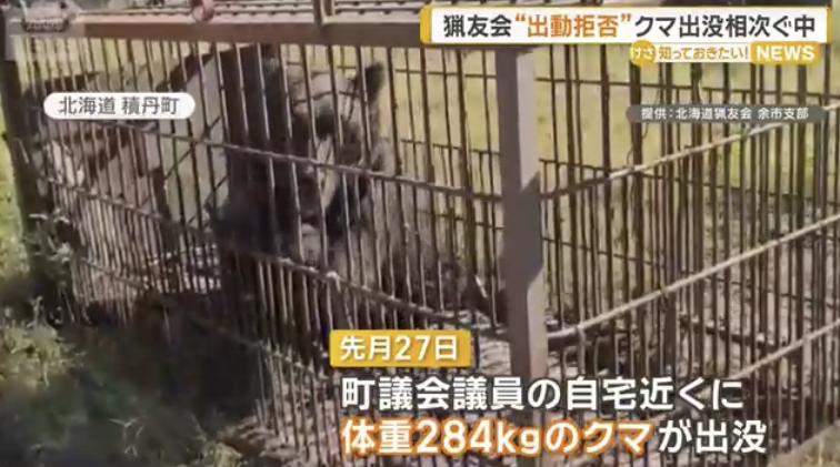 先月27日、北海道・積丹町に住む町議会議員の自宅近くに体重284キロのクマが出没しました。